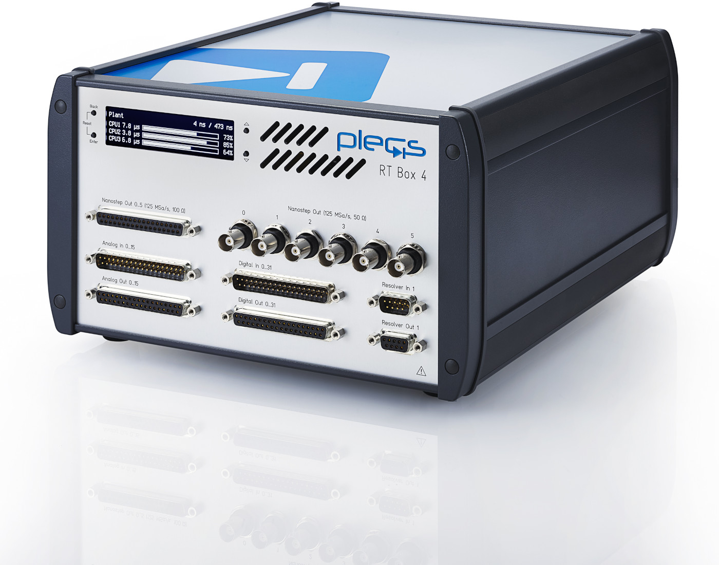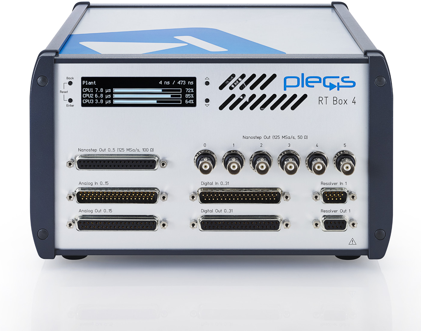 Alongside the standard analog and digital I/Os of the RT Box 2, the new RT Box 4 features six high-speed analog outputs operating at 125 MSPS. This enables real-time observation of high-frequency currents and voltages computed by the Nanostep solvers. Since the Nanostep solvers calculate new values every 4 ns, the Nanostep outputs deliver updated signals every second sample, ensuring exceptionally fast and precise signal reproduction.